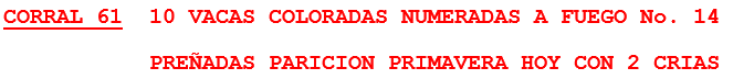 LOTE 61, VACAS PURAS CONTROLADAS PREÑADAS Lote Anterior Volver al remate Lote Siguiente Información del Lote Pedigree Contacto Buenos Aires - Gral Pinto Información del Lote Identificador: #81156 Cantidad 10 Categoría Vacas PC preñadas Raza Aberdeen Angus Negro Departamento Buenos Aires Ubicación Gral Pinto Plazo pago a Consultar días Buenos Aires - Gral Pinto 175 Visualizaciones ClicData Pedigree Contacto Empresa: MARTÍN G. LALOR S.A. Nombre*: E-mail* : Mensaje Enviar Registrese gratis Este contenido Exclusivo está disponible sólo para usuarios registrados Ingresar
