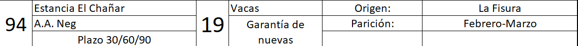 LOTE 69, VACAS ANGUS NEGRAS Lote Anterior Volver al remate Lote Siguiente Información del Lote Pedigree Ofertar Contacto Buenos Aires - Brandsen Información del Lote Identificador: #84140 Cantidad 19 Categoría Vaquillonas Raza Angus Certificado 94 Departamento Buenos Aires Ubicación Brandsen Plazo 30, 60 y 90 días Buenos Aires - Brandsen Ofertar Aún no tiene ofertas Plazo: Contado 30 días 45 días 60 días 90 días 120 días 180 días Contado, 30 y 60 dias Su Oferta en $: − + Step: -0,01 / +0,01 Programar puja hasta: Programar puja hasta Aumentar puja programada 60000.02 60000.2 ** Iniciar sesión para ofertar Ofertar Listado de preofertas $ Fecha/Hora Estado Este lote aún no tiene preofertas. 89 Visualizaciones ClicData Información del Lote Contacto Comercial a cargo: JOAQUIN JAUREGUI LORDA Y RICKY ORAZI Empresa: JÁUREGUI LORDA S.R.L. Nombre*: E-mail* : Mensaje Enviar Registrese gratis Este contenido Exclusivo está disponible sólo para usuarios registrados Ingresar