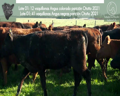 | Observaciones | “Parición OTOÑO 2021, IATF 12/06/2020 (Vaquillonas negras con PUÑAL y PAIMUN, las coloradas con TOLUCA). Repaso con toro hijos de Mr. Angus, Bimarck y Lider. El lote 11 y 12 se dividirá al corte” |