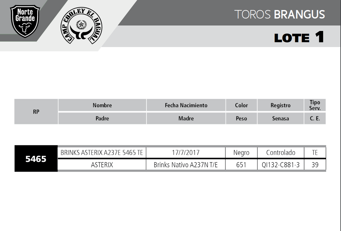 LOTE 1, TORO BRANGUS