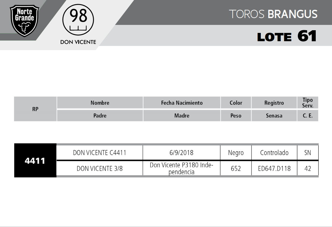 LOTE 61, TORO BRANGUS