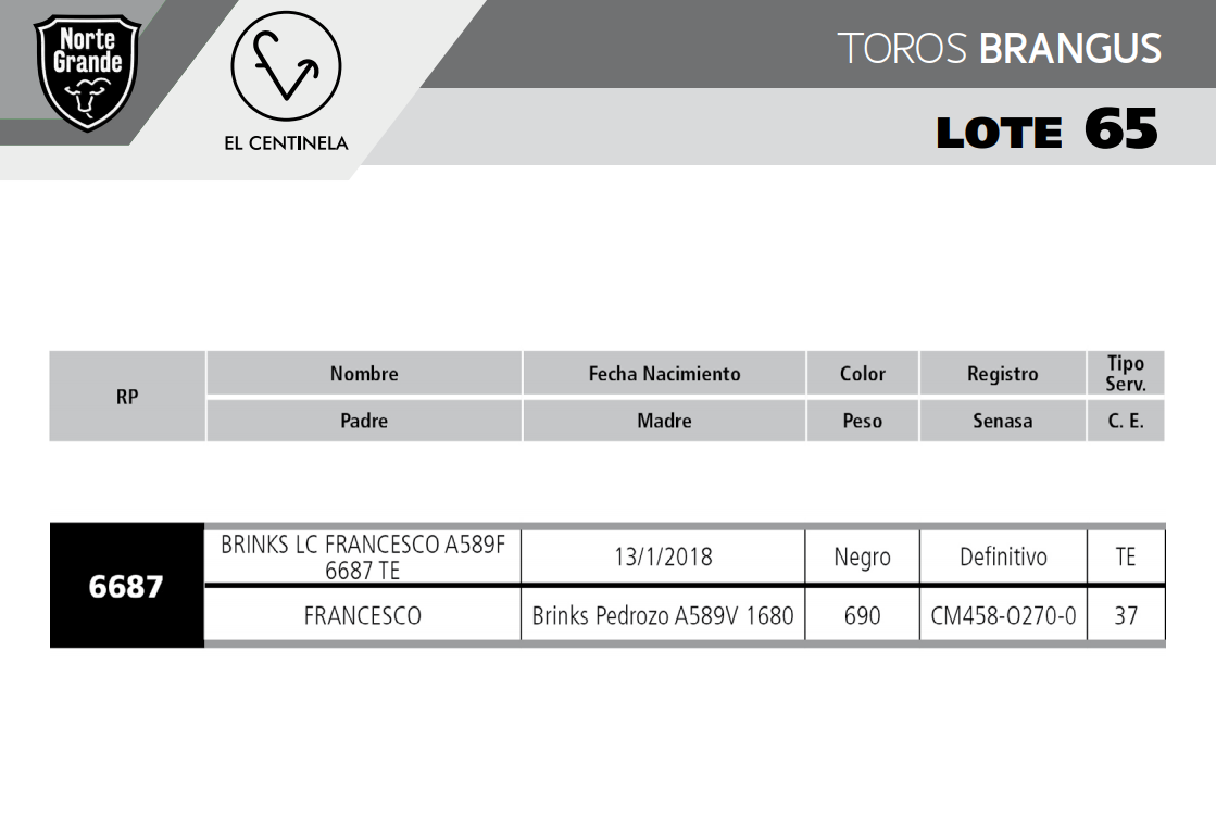LOTE 65, TORO BRANGUS