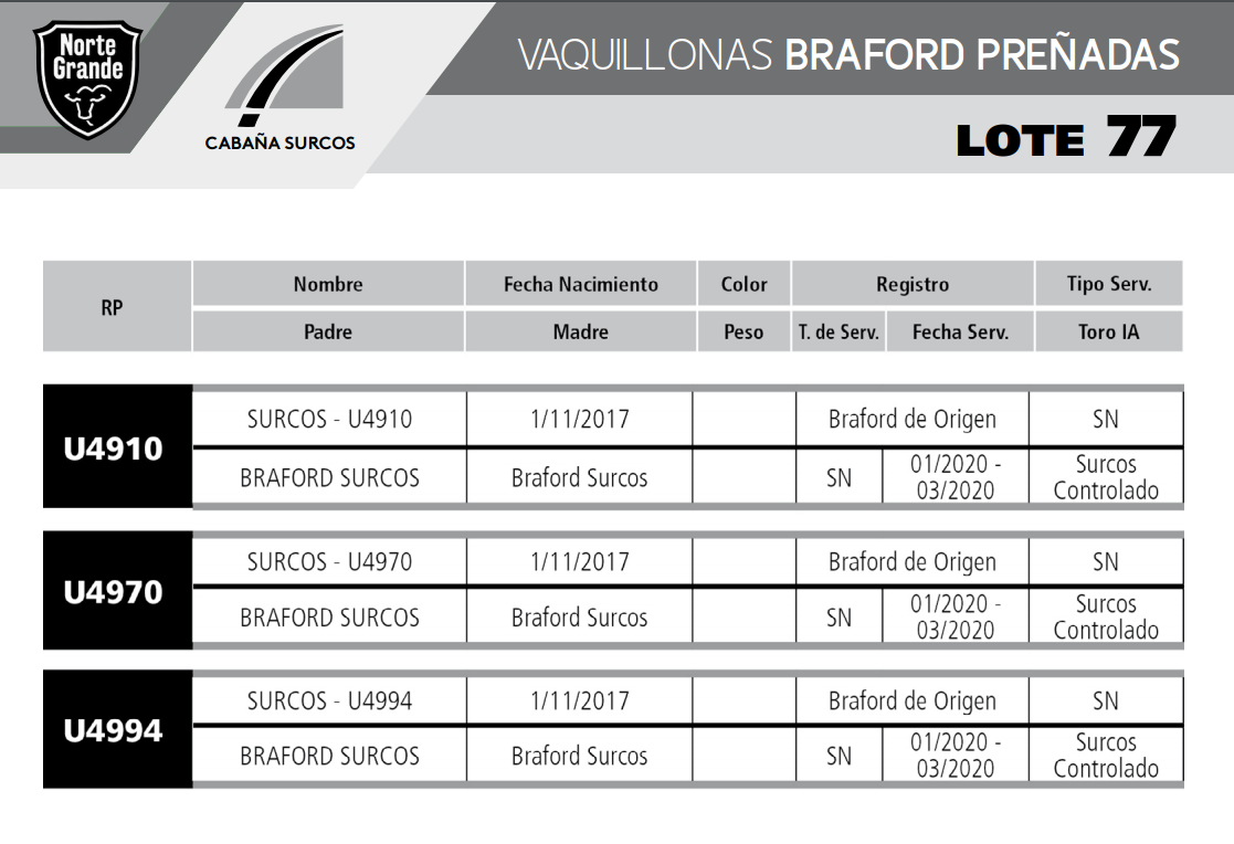 LOTE 77, VAQUILLONA BRAFORD PREÑADA