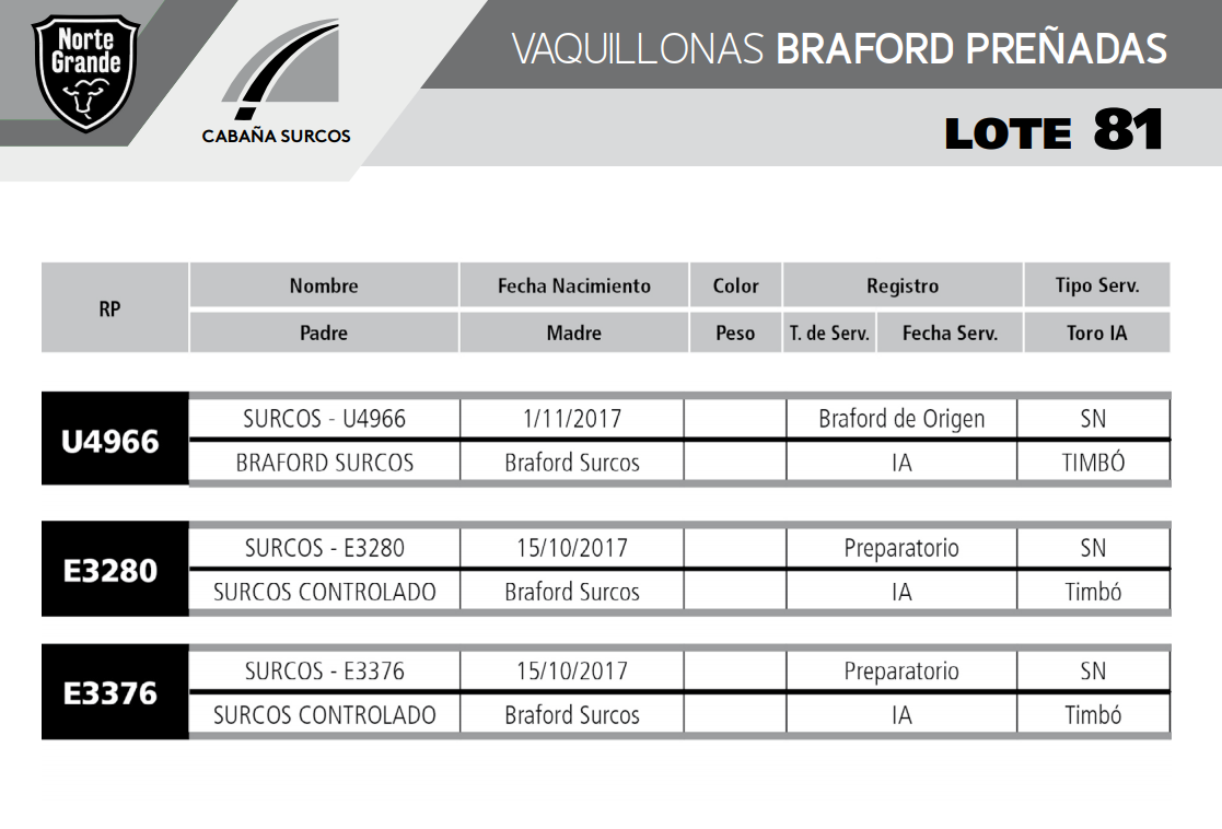 LOTE 81, VAQUILLONA BRAFORD PARIDA